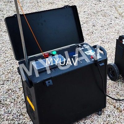 Station de drones attachée: hauteur de 100 m, poids de 20 kg, sortie en courant continu de 420 V, compensation automatique de tension